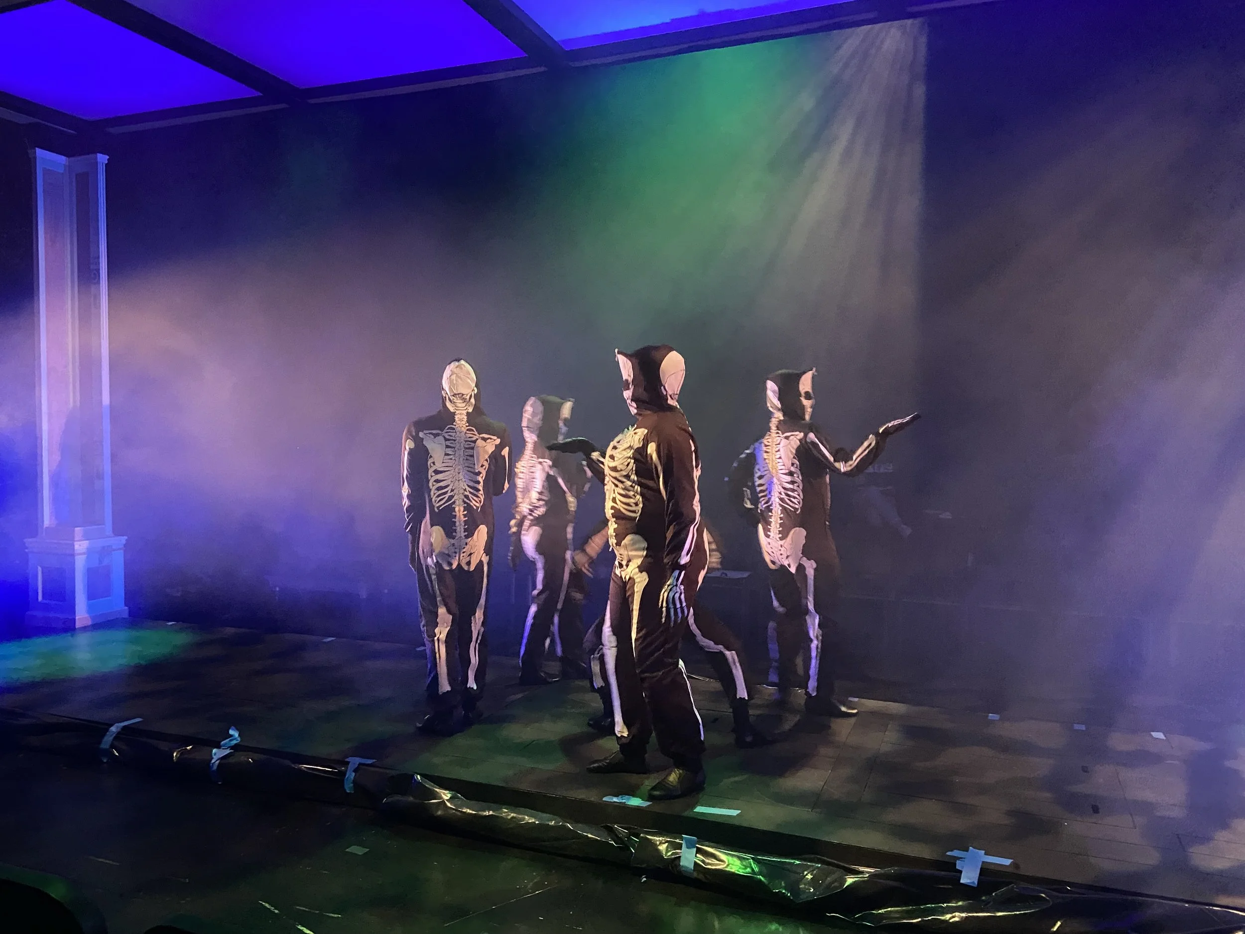 Cast: Mo Andres, Marcos Arjona, Isabelle Chirls, Miranda DeRossi, Skye Figueroa, Chiara Kaufman, Max O’Hare, Luciel Sanchez, Michayla Robertson-Pine, and Evan Sullivan. Co-Directed and Choreographed by Erica Wray. Stage Managed by Brionna Ingram, Set Design by Brian Prather, Lighting Design by Sam Harris, Costume Design by April Hickman, Props by Annabella Machnizh.